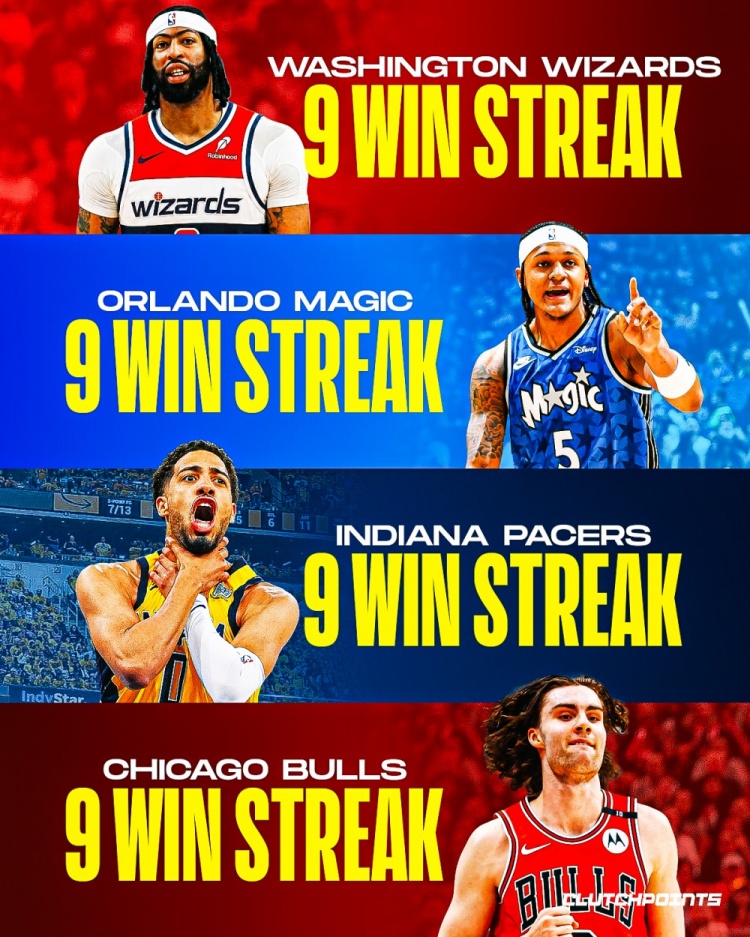 各队2000年至今最长连胜记录!热火27连胜 勇士24 火箭22 湖人11
